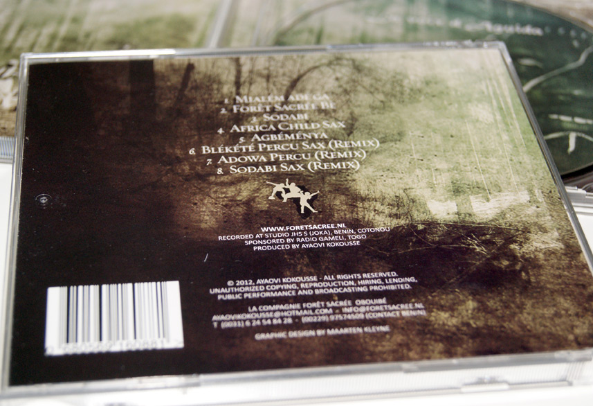 The concept behind it all was that of a magical secret forest, which you are drawn to through the ferocious beats of the Aguida. It is a journey through Ayaovi’s land of birth and the village of Bé. The idea was to visualize that magical forest through a lot of greens with an illustrative style. The record was released as a jewel case cd.